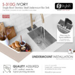 14 in Single Bowl Bar Sink, 18 Gauge Stainless Steel with Grid and Basket Strainer, by Stylish® S-310G Ivory