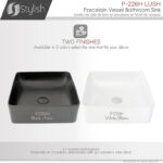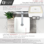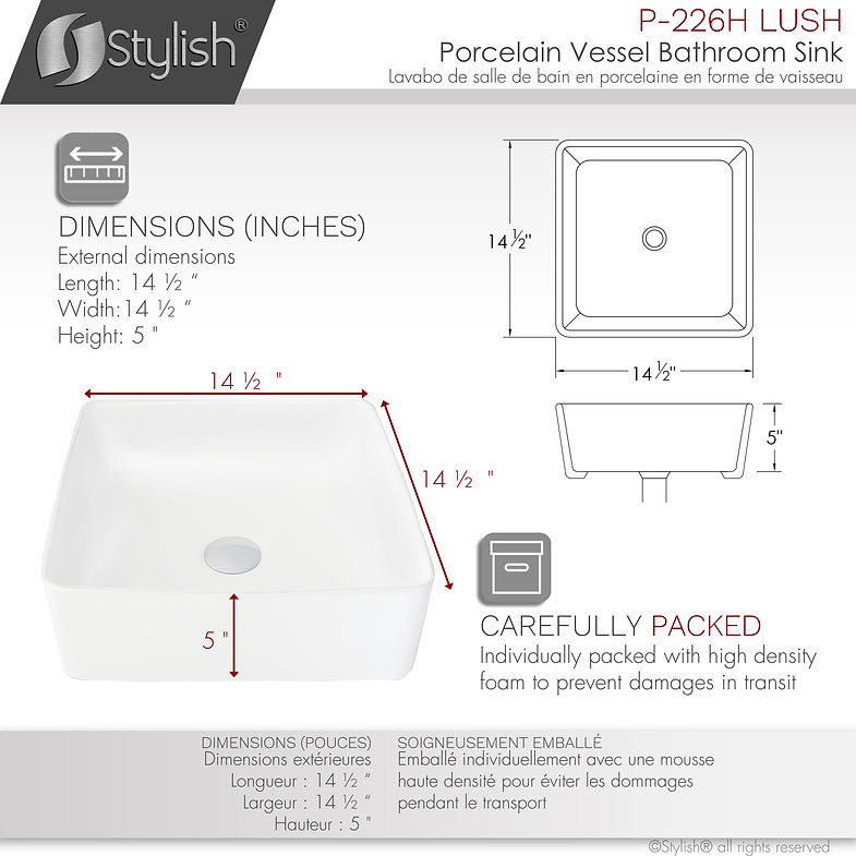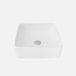 This over the countertop vessel sink has a distinctive square shape and slim top edge providing a unique look, its size is great to fit any small bathroom. The smooth sink surface drains water easily keeping your sink dry and clean. This sink shape and the pure glossy white color will make your bathroom stunning.