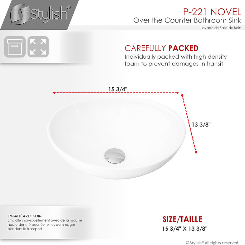 This ceramic bathroom vessel sink is really easy to clean and maintain. Just wipe it clean with a damp cloth or some soap. Being resistant to stains, fading and chipping, our ceramic sinks are here to satisfy even your most demanding needs