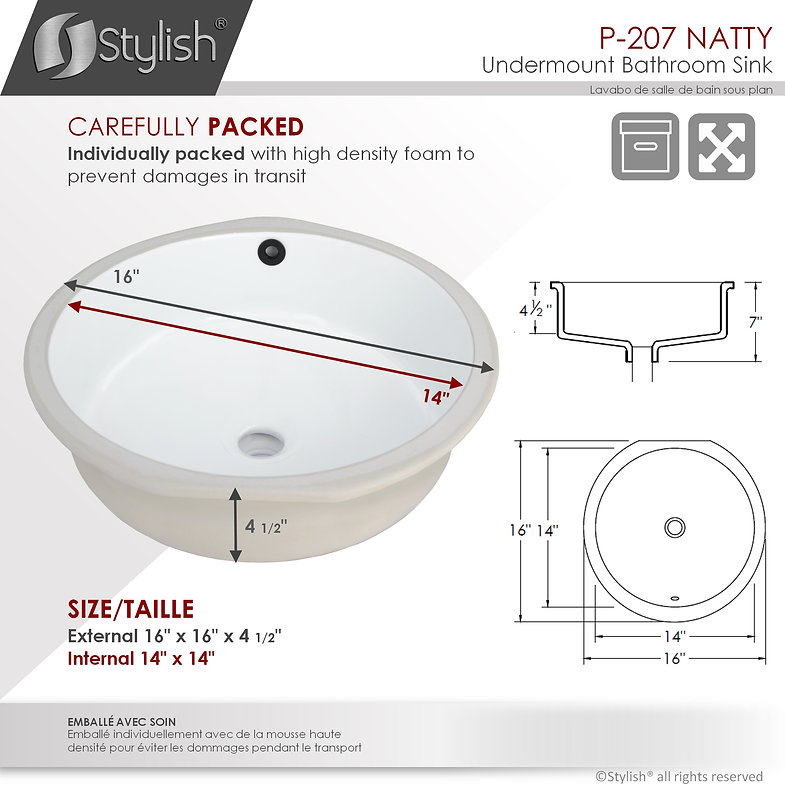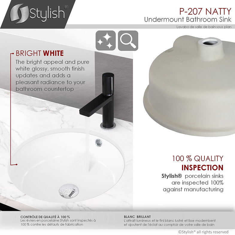Upgrade bathroom d’cor effortlessly with this Stylish® porcelain undermount sink. No need to spend a small fortune on pricey home decorators when you can simply get yourself this beautiful porcelain white sink, right? The P-207- Natty ceramic sink basin by Stylish® offers understated elegance with a modern touch. The glamorous shine and impeccable round shape will make any bathroom space look absolutely stunning.
