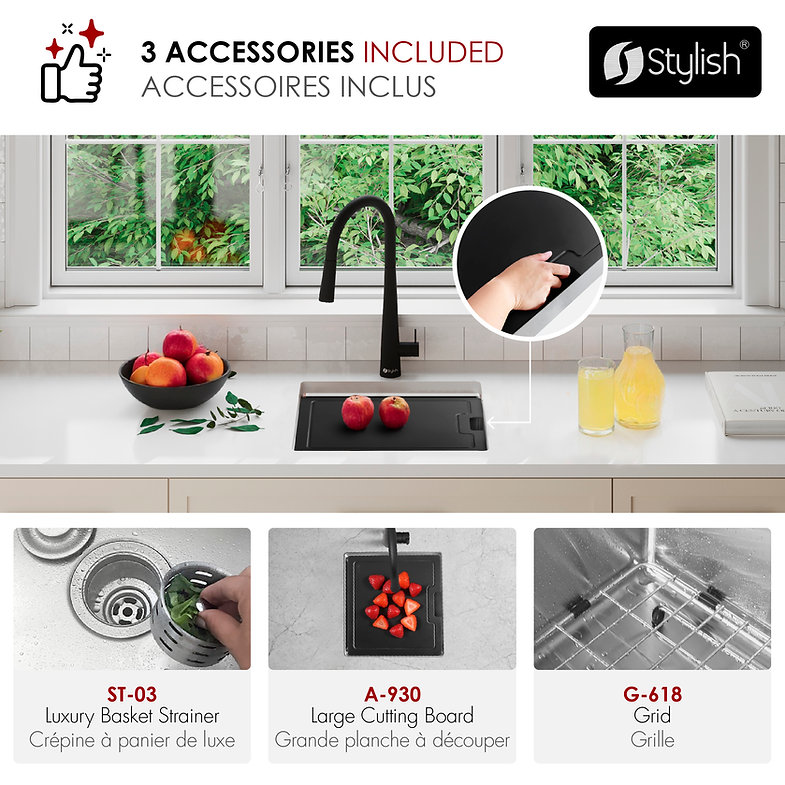 18 inch Workstation Single Bowl Undermount 16 Gauge Stainless Steel Kitchen Sink with Black Cutting Board included, by Stylish® S-618WK Versa18