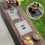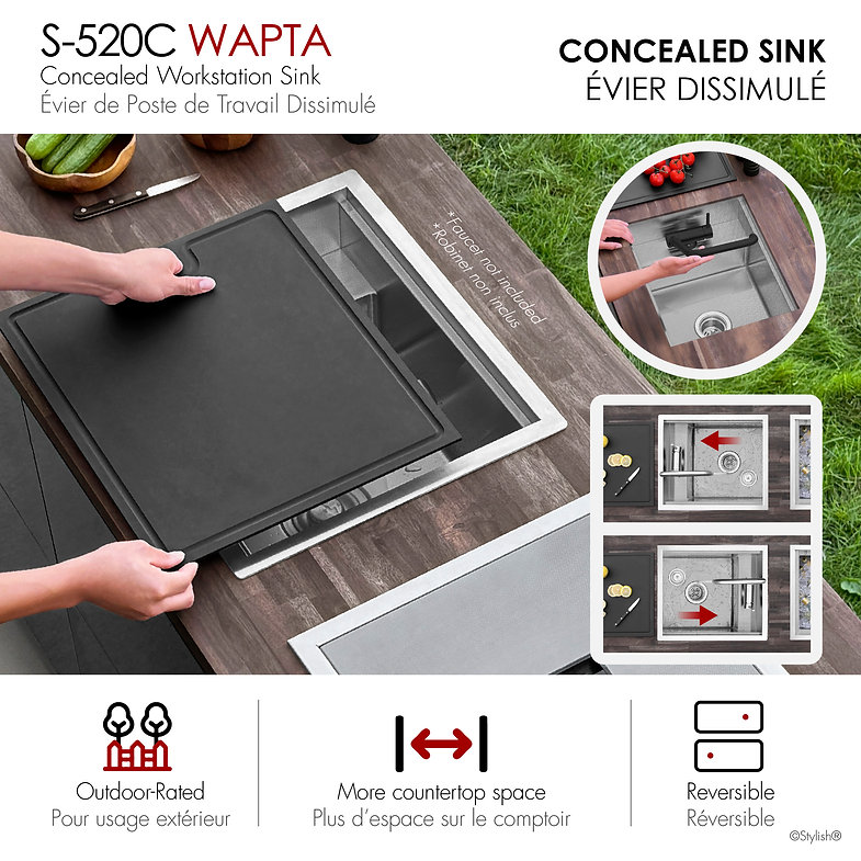 This innovative concealed sink has been designed to maximize space and durability in your kitchen, bar, or outdoor station. The metal lid allows you to hide the faucet, creating additional counter space perfect for outdoor use with its rugged Dura-Tek Finish.
