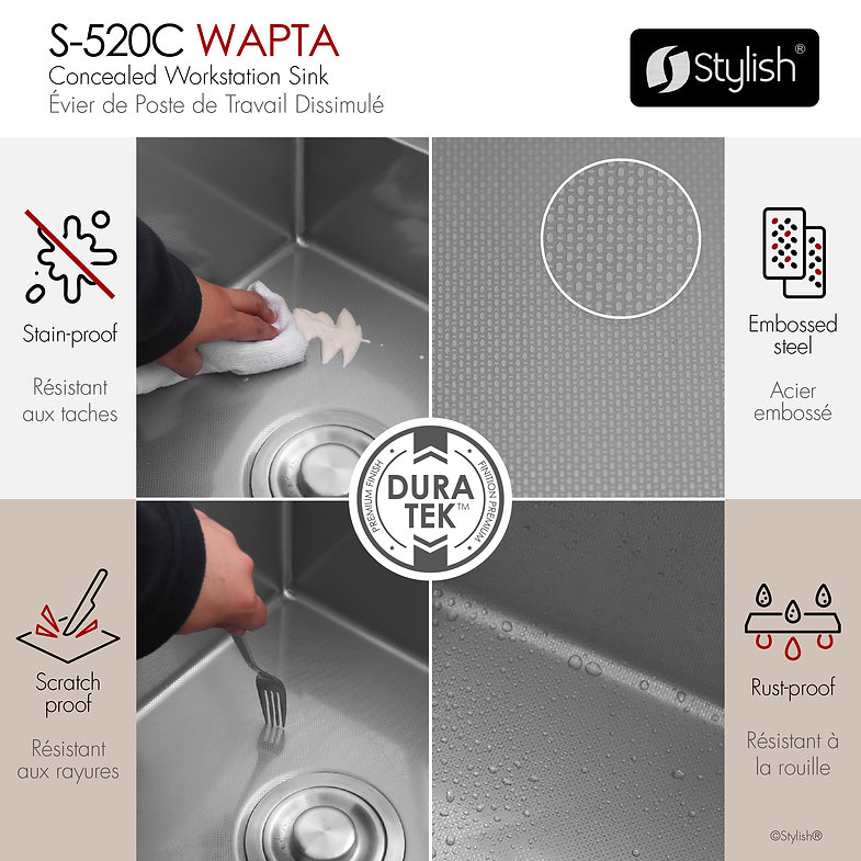 20 inch Dual Mount Workstation Single Bowl Utility Sink with Dura-Tek and Accessories, by Stylish S-520C Wapta