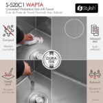 20 inch Dual Mount Workstation Single Bowl Utility Sink with Dura-Tek, Accessories and Stainless Steel Matte Black Faucet, by Stylish S-520C2 Wapta