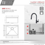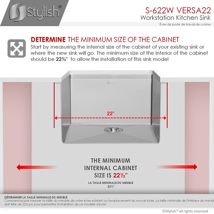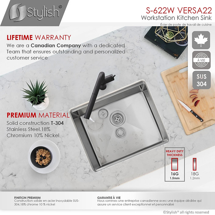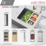 22 inch Workstation Single Bowl Undermount 16 Gauge Stainless Steel Kitchen Sink with Built in Accessories, by Stylish® S-622W Versa22