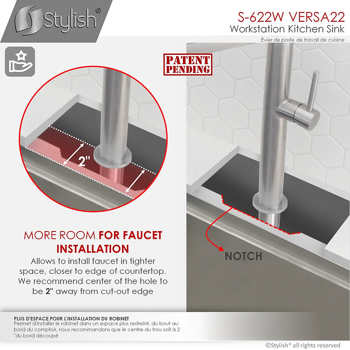 Adding style and functionality to your kitchen has never been easier with the amazing Versa22 kitchen sink workstation which includes one 22”x19” single bowl undermount stainless steel kitchen sink, one protective stainless steel bottom grid, one perfect fit bamboo cutting board. This workstation sink comes with the ledge on the longer sides of the sink. This ledge allows the kitchen sink accessories to perfectly fit making it a unique and functional experience. The undermount stainless steel kitchen sink features a rear set drain that truly allows maximum space under the kitchen cabinet. The Sink bottom is designed with small slope and grooves for efficient water drainage. Another great reason to have this workstation installed is the undermount soundproofing, sink is covered with thick pads on all sides, it is guaranteed to be silent while in use, additionally there is an undermount coating that will protect your kitchen cabinet from condensation. Made from premium material, the Versa22 workstation is handcrafted using super thick 16 gage and premium 304 stainless steel with 18/10 chrome/nickel content and featuring a commercial-grade satin finish to hide marks and scratches and unlike most competitors this sink features gently rounded corners all around to make cleaning as simple as wiping the surface with a damp cloth. This workstation would not be completed without our luxury basket strainer. Also included, the basket strainer is larger and more efficient than regular strainers as it catches food scraps and debris to prevent the drain from getting clogged. For easy installation, all mounting hardware and installation instructions are provided. Our Stylish® and functional single bowl undermount kitchen sink workstation is what your kitchen is missing.
