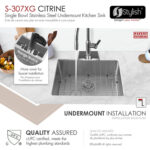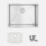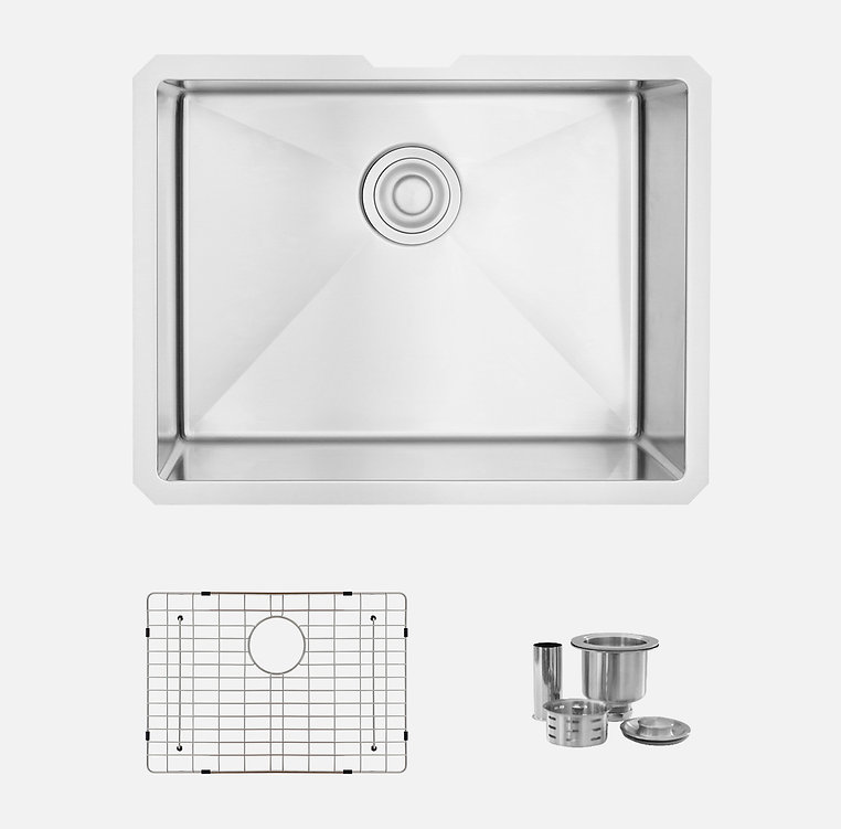 Upgrade your kitchen with this 23” x 18” single bowl undermount stainless steel sink. Featuring a modern, rectangular design, it offers a luxurious look while the handmade SUS 304 16G stainless steel ensures exceptional durability. The brushed satin finish maintains its elegance over time.