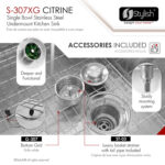 23 in Single Bowl Kitchen Sink, 16 Gauge Stainless Steel with Grid and Basket Strainer, by Stylish® S-307XG Citrine