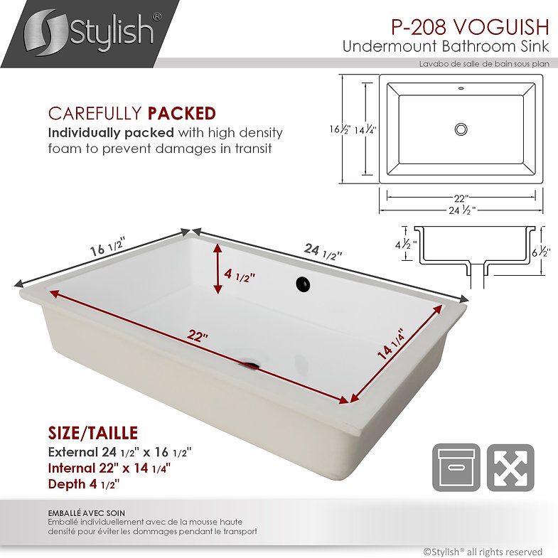 Upgrade bathroom d’cor effortlessly with this Stylish® porcelain undermount sink. No need to spend a small fortune on pricey home decorators when you can simply get yourself this beautiful porcelain white sink, right? The P-208- Voguish ceramic sink basin by Stylish® offers understated elegance with a modern touch. The glamorous shine and impeccable round shape will make any bathroom space look absolutely stunning.
