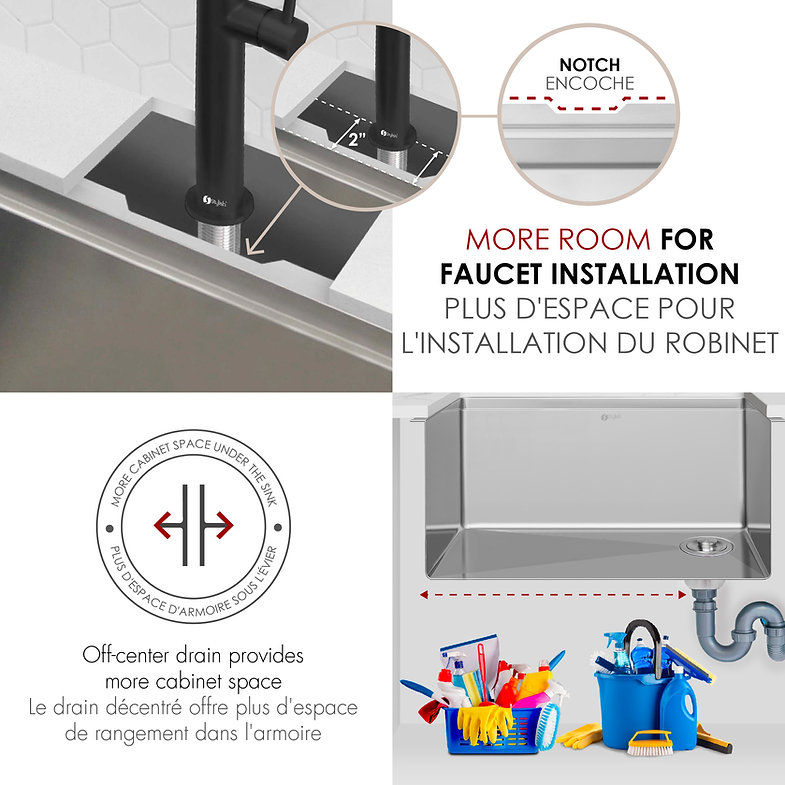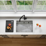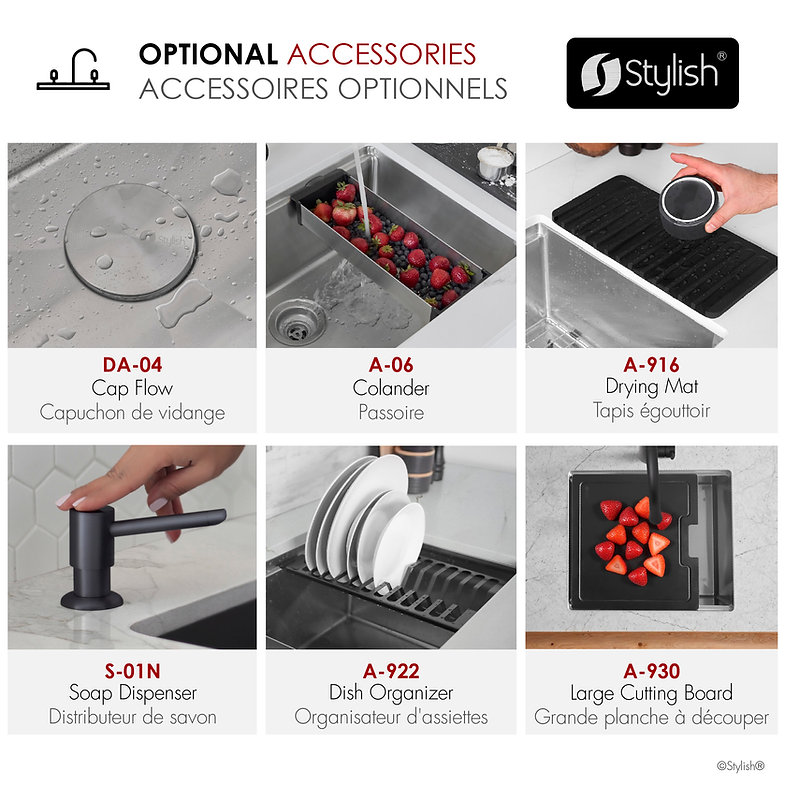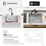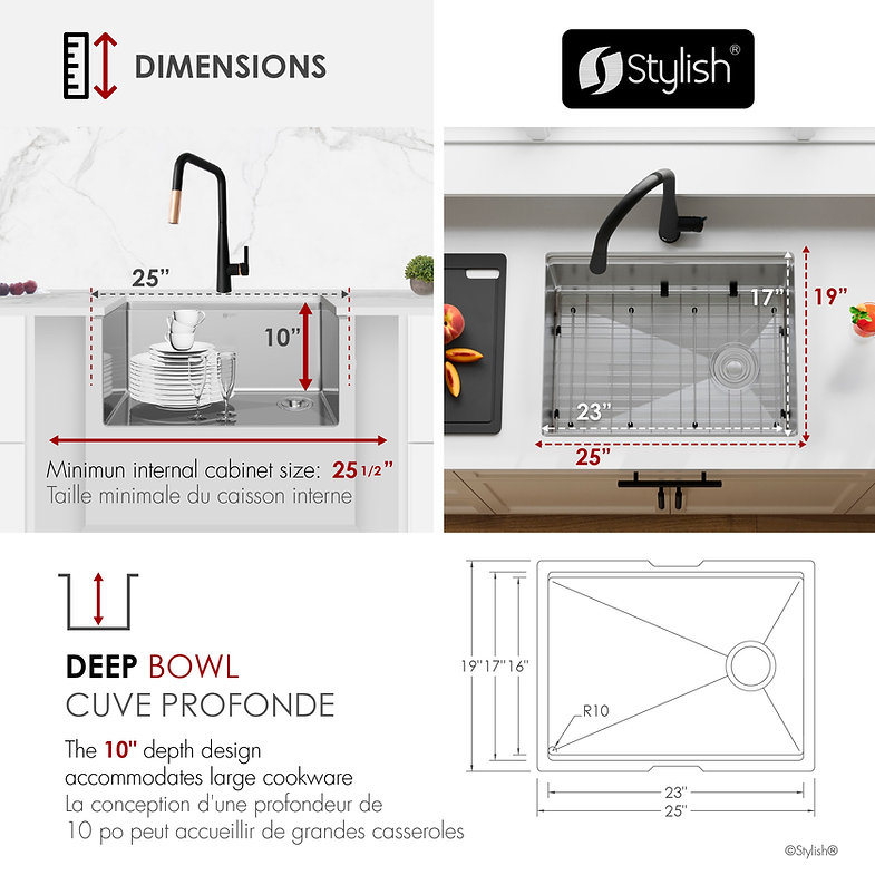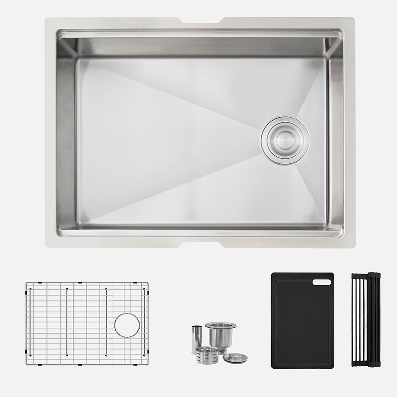 Elevate your kitchen with the S-612WK Versa25 workstation sink. Handcrafted from 16‑gauge T‑304 stainless steel, its 25″ × 19″ × 10″ deep single bowl features integrated ledges for sliding accessories, a reversible side‑set drain, and premium soundproofing. Includes four accessories – bottom grid, basket strainer, drying rack, and cutting board – for unmatched prep efficiency. Requires minimum 27″ external and 25.5″ internal cabinet width