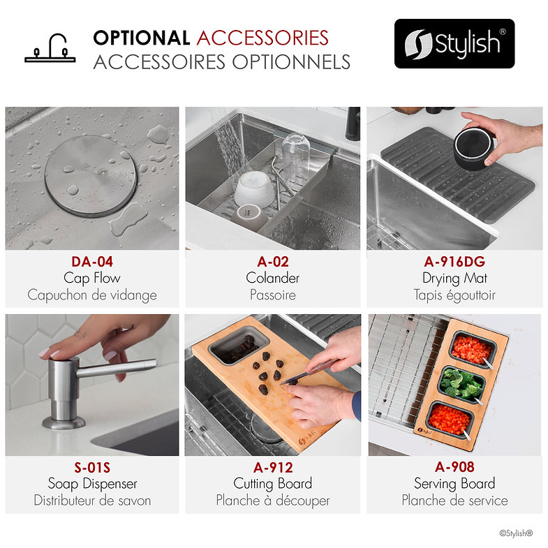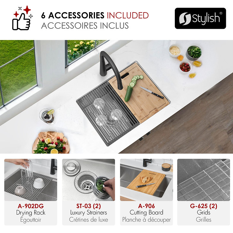 25 inch Workstation 60/40 Double Bowl Undermount 16 Gauge Stainless Steel Kitchen Sink with Accessories included, by Stylish® S-625WD Versa25