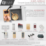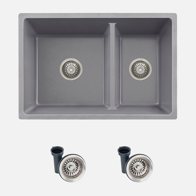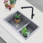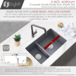 Rock your kitchen experience with this fantastic 27-inch double bowl dual mount 60/40 split. This composite granite kitchen sink is made with 80% natural quartz, making it exceptionally durable and low maintenance. This sink features a 60/40 low divider with a deep 9-? inch bowls. Although this double bowl sink only measures 27 inches, it is designed with a low divider and a large bowl which provides ample space to handle large pots, it is the perfect double bowl sink for a small kitchen cabinet. This double bowl granite kitchen sink is highly scratch resistant and quite easy to clean and maintain. It is a dual mount sink so it can be installed over the countertop or as an under-mount sink. The thick granite material eliminates vibration and noise when the sink is in use, making it exceptionally quiet. This composite granite kitchen sink is available in three beautiful colors, black, gray, and white, The color is part of the whole sink material ensuring non-fading and uniform color that will last for lifetime. This sink includes a standard strainer compatible with the thick drain surface, installation instructions, and mounting hardware. Clean lines and simple shapes define this stunning single bowl dual mount composite granite kitchen sink. This sink will modernize the look of your entire kitchen.