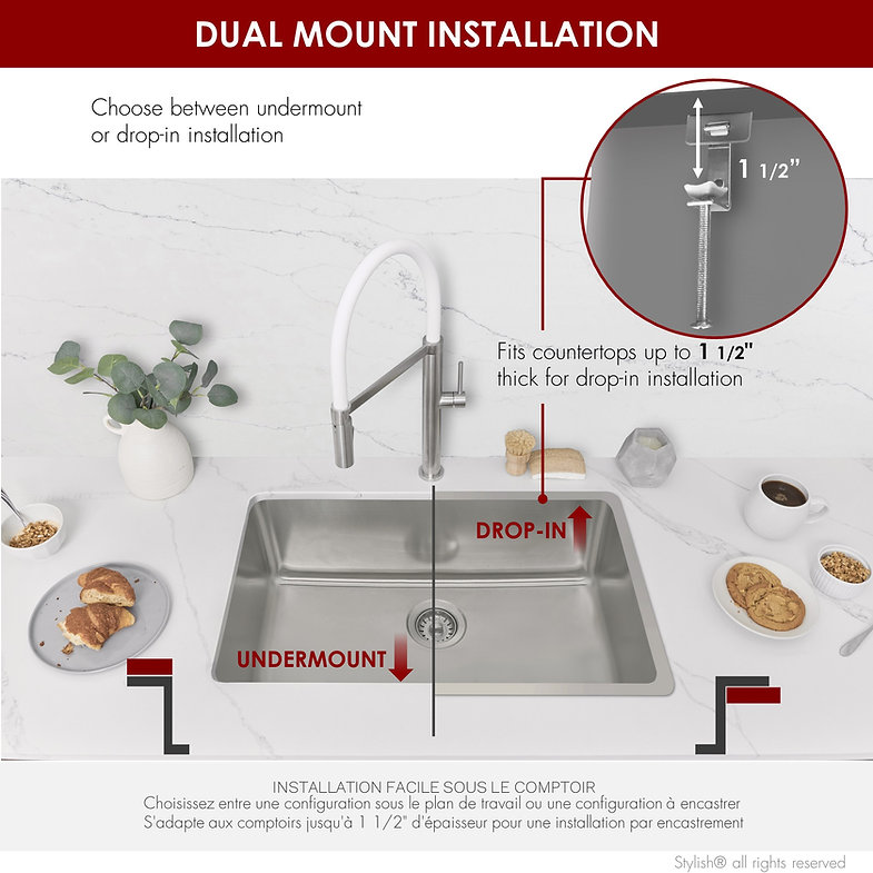 It has a dual-mount design installation, giving you the freedom to choose between under-mount or drop-in configurations.