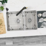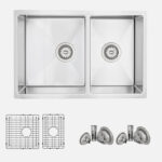 Handcrafted using premium 304 stainless steel with 18 gauge and 18/10 chrome/nickel content and featuring a commercial grade brushed finish and extremely rust resistant. This undermount kitchen sink is equipped with top-level soundproofing, including rubber dampening pads and protective coating, which reduces condensation and further dampens water sound.