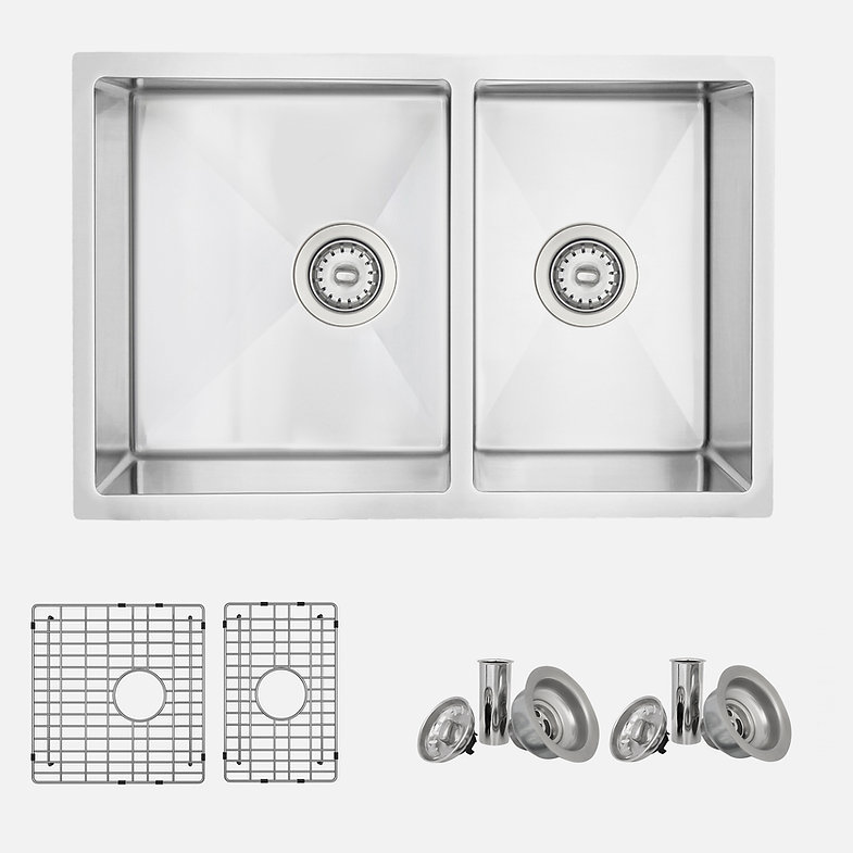 Although this double bowl sink only measures 28 inches, it is designed with a large 15 inches bowl which provides ample space to handle large pots, it is the perfect double bowl sink for a small kitchen cabinet. This undermount kitchen sink has the drains in the middle, which allows reversible installation, the large bowl can be installed on the left or the right side to best fit your desired layout. Both basins have drain grooves for optimal drainage.