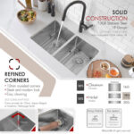 The commercial-grade brushed finish on the interior maintains a uniform patina over time. Whether installed as an undermount or drop-in, this sink seamlessly integrates into any kitchen, combining practicality with sophisticated design
