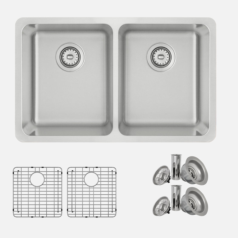 29 in Dual Mount Double Bowl Kitchen Sink, 18 Gauge Stainless Steel with Grids and Standard Strainers, by Stylish® S-414TG Avila