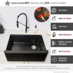 30 inch Farmhouse Workstation Single Bowl Black Composite Granite Apron Kitchen Sink with Built-in Accessories, by Stylish® S-830WN Bronte