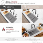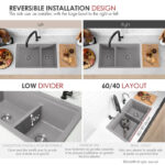 Enhance your kitchen experience with our exceptional 30-inch double bowl, 60/40 double-mount sink. Made of composite granite containing 80% natural quartz, this sink is not only beautiful and durable, but also remarkably low-maintenance.