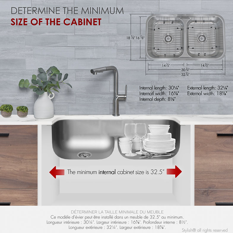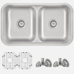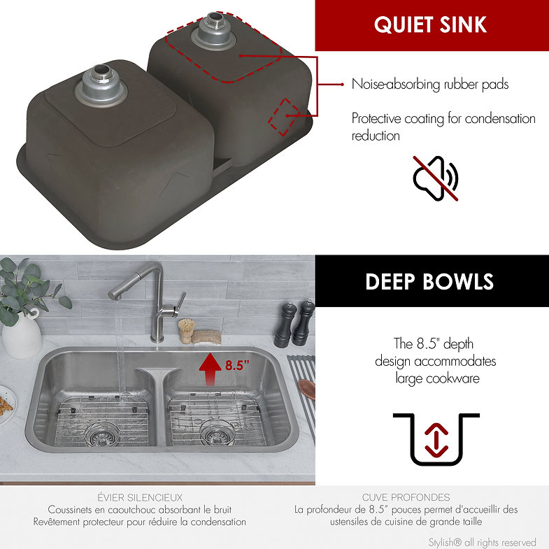 32 in Dual Mount Double Bowl Kitchen Sink, 16 Gauge Stainless Steel with Grids and Standard Strainers, by Stylish® S-202XTG Olivine