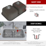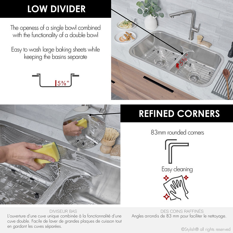 With a modern aesthetic, the sink boasts a sleek design and 83 mm radius corners, adding a touch of elegance to any kitchen decor. This 32-inch sink provides ample space for all your washing and prep needs.
