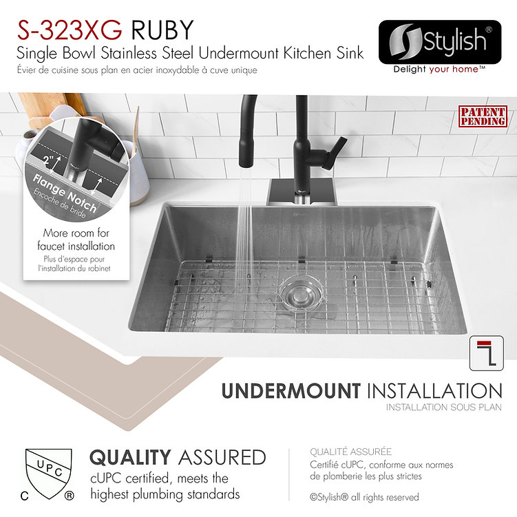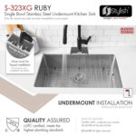 32 in Single Bowl Kitchen Sink, 16 Gauge Stainless Steel with Grid and Basket Strainer, by Stylish® S-323XG Ruby