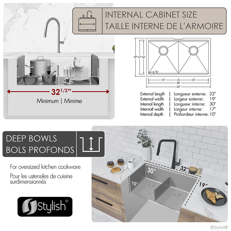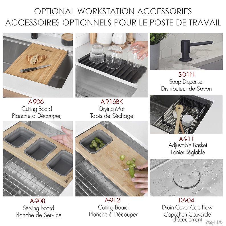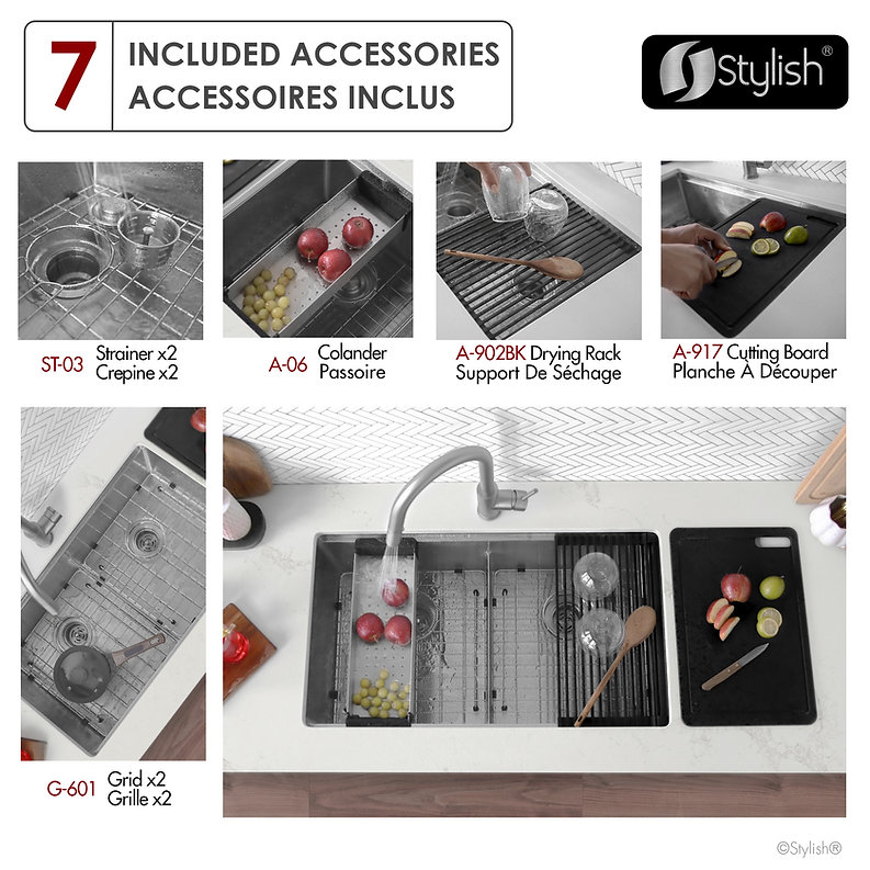 Designed in Canada, this sink meets North American standards and includes luxury basket strainers, two bottom grids, and high-quality bamboo accessories for added convenience and style.