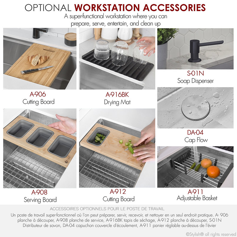 Complement the style and function of your sink workstation with our accessories, designed to perfectly fit your single undermount kitchen sink while offering advanced convenience