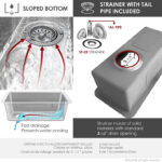 Presenting our versatile 9″ dual mount single bowl stainless steel kitchen sink where efficiency meets style. Crafted with premium 18-gauge stainless steel, combined with 18% chrome for rust resistance and enhanced with 10% nickel for strength and hardness. This sink includes a solid metal strainer and mounting hardware. The strainer perfectly matches the sink, while sound guard padding and spray-coating provide noise and thermal insulation. The commercial-grade brushed finish helps to preserve its appearance over time. This sink is ideal for any small space, this stainless-steel sink adds a practical touch to any room.
