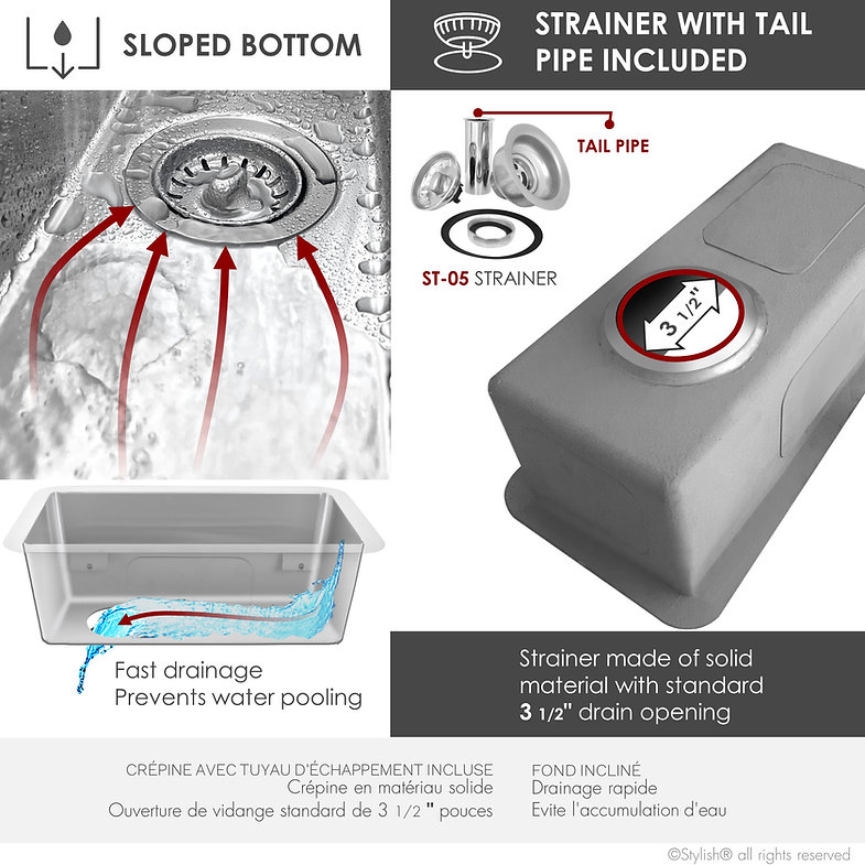 9 in Dual Mount Single Bowl Bar Sink, 18 Gauge Stainless Steel with Standard Strainer, by Stylish® S-417T Soria