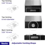 | Vent Size | 6″, 10″ x 3.25″ |
