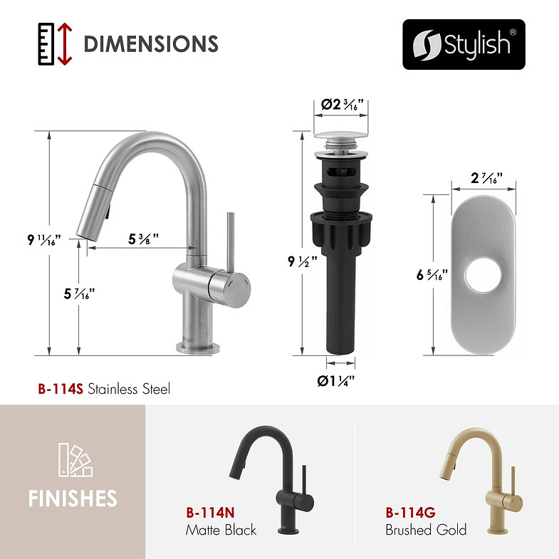 This faucet is the definition of functional elegance. Featuring a sleek single lever handle, it offers exceptionally fluid handling to regulate both flow and temperature. Its contemporary design is destined to elevate the visual appeal of your bathroom, guaranteeing supreme comfort. At the core of its durability are the ceramic cartridges and solid stainless steel construction, ensuring consistent, drip-free performance. Its advanced aerator efficiently preserves water without reducing intensity. Choose from Matte Black, Stainless Steel, and Brushed Gold. Single-hole installation, compatible with North American plumbing standards.