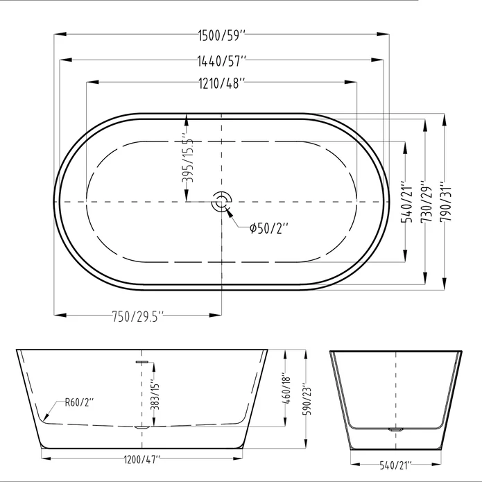 - 100% lucite acrylic material made bathtub, smooth and glossy surface