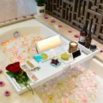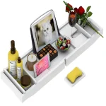 This luxury bamboo bathtub caddy tray – adjustable natural wood bath tub organizer with wine holder, cup placement, soap dish, book space & phone slot for spa, bathroom & shower – slbcad20 – 100% all natural bamboo shelf – elegant shower caddy / bathtub tray – universal organizer for ultimate relaxation – minimalistic style & eco -friendly construction – waterproof rated, water & mould-resistant design – adjustable: sturdy & stable extending ‘slide-out’ arms – integrated cup & wine glass grooves – used for smartphones, tablets, books & magazine convenience – an essential piece for long & relaxing baths!.