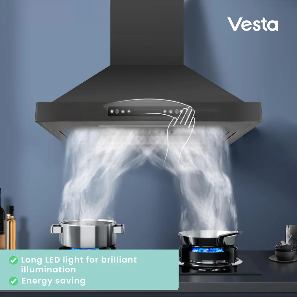 • Strong Suction, High Efficiency: Engineered with an advanced turbo motor design, this premium black stainless steel range hood delivers exceptional 800 CFM suction power. Its durable, anti-corrosive construction ensures long-lasting performance while efficiently removing smoke and odors.