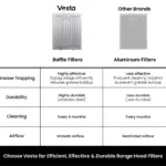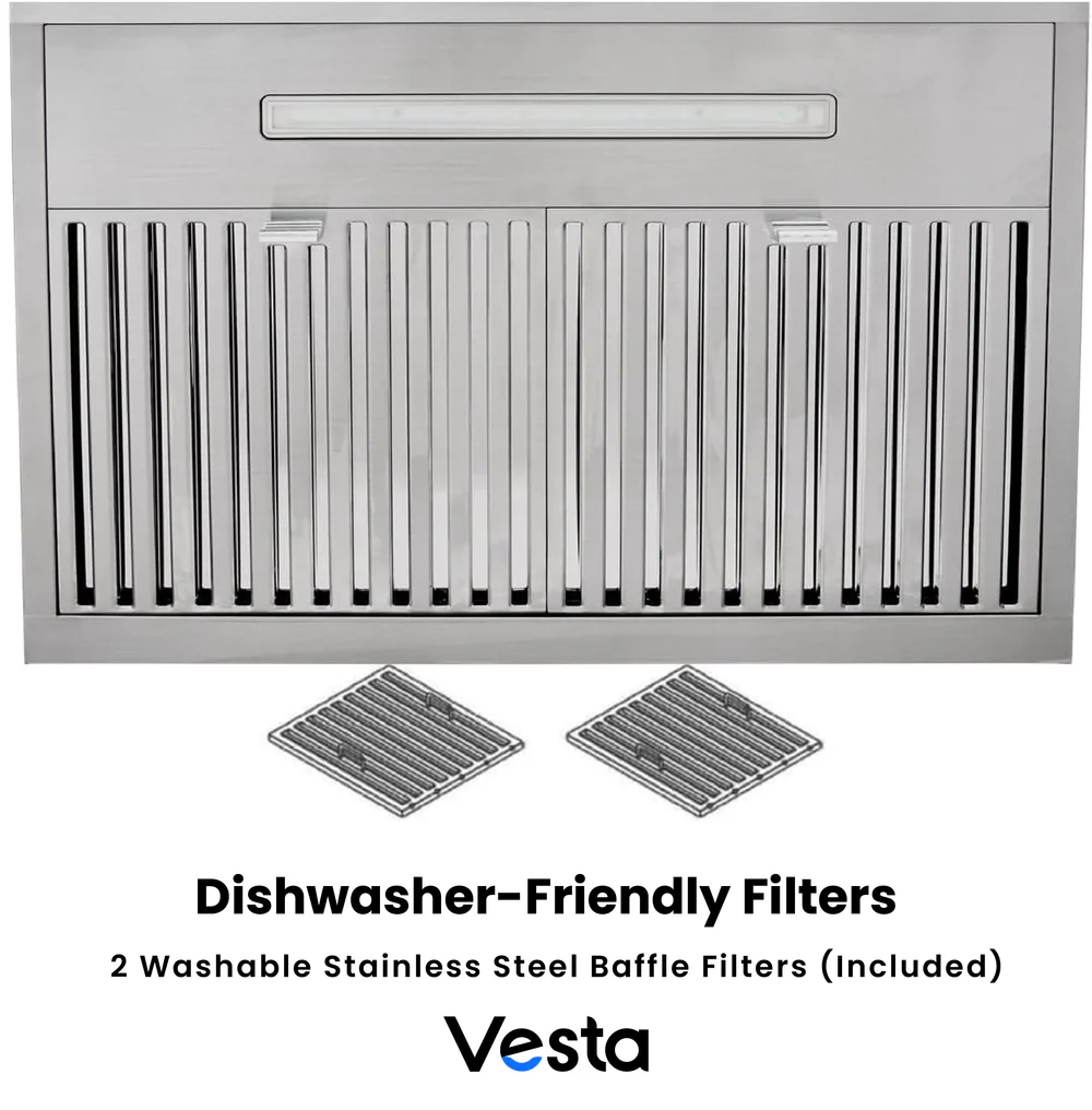 ✅ DISHWASHER-SAFE FILTERS & EFFICIENT 6″ TOP VENT: Simplify maintenance with detachable, dishwasher-safe baffle filters. The top 6-inch vent ensures effective airflow and ventilation, keeping your kitchen fresh.