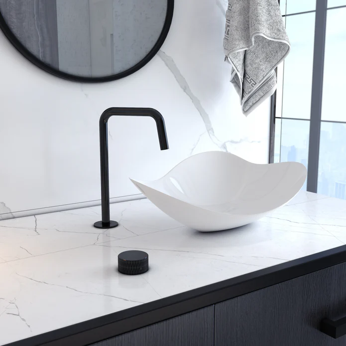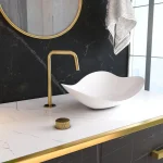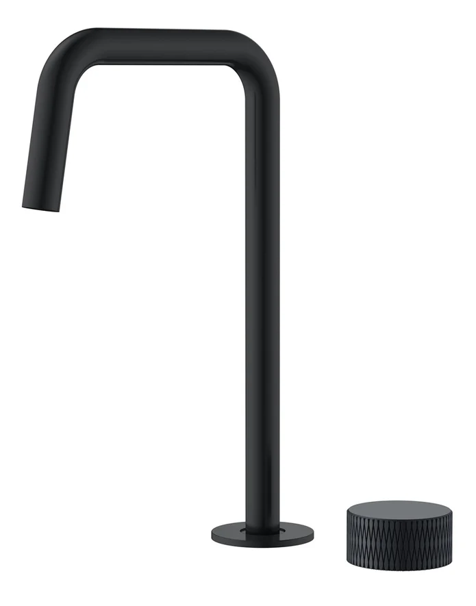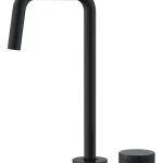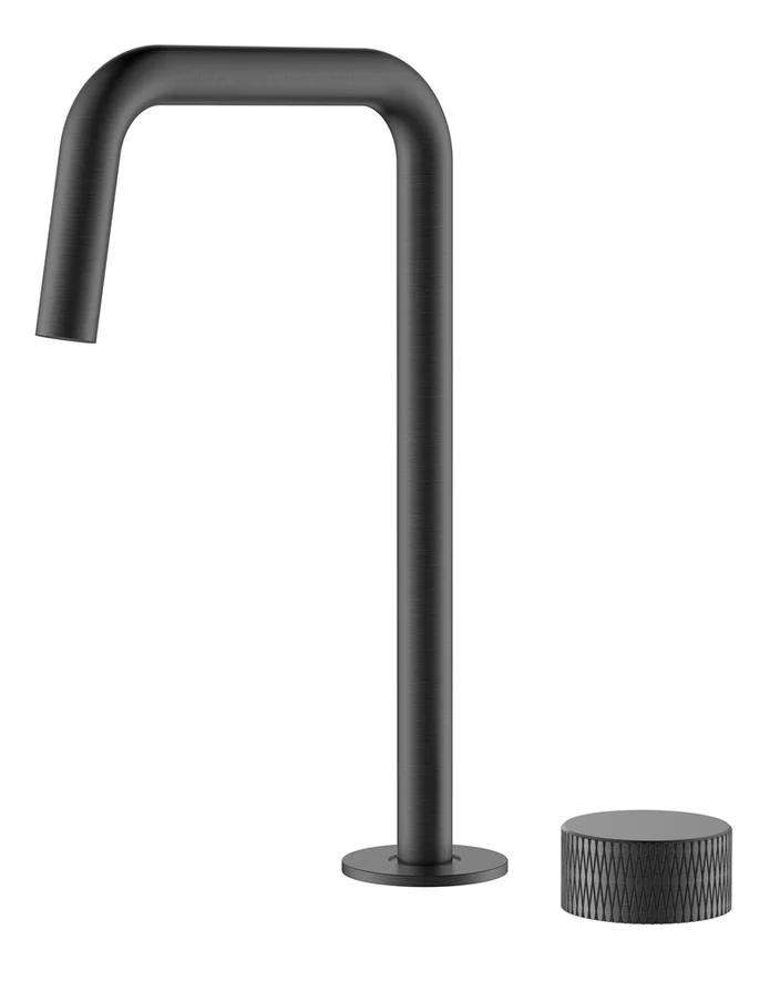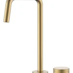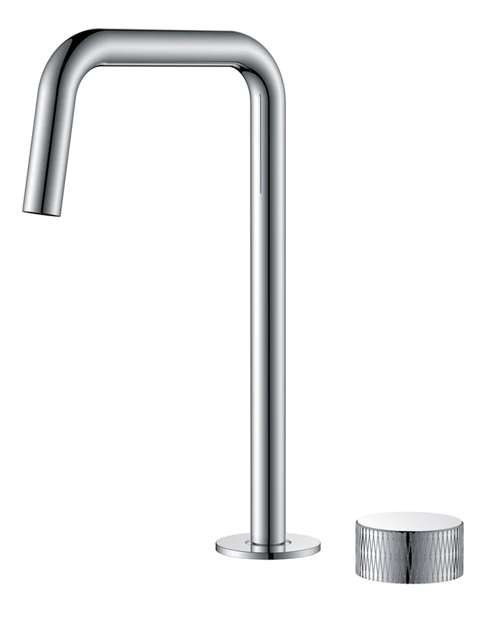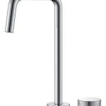 - Two-piece vessel sink faucet; layout spout and knobs as preferred