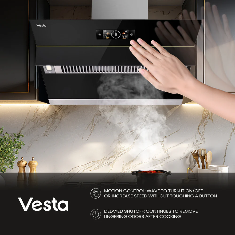 USER-FRIENDLY LCD SCREEN & AUTO DELAY SHUTOFF: This range hood offers convenient operation. With hand gesture recognition, you can effortlessly switch between the three fan speeds by waving your hand to the right to increase the speed or to the left to shut down the hood (when facing the range hood). Additionally, the unit comes equipped with an auto-delay shutoff function, ideal for situations where you need to attend to other tasks, such as caring for a baby or playing with pets after cooking. Simply set it up and leave the kitchen without worry.