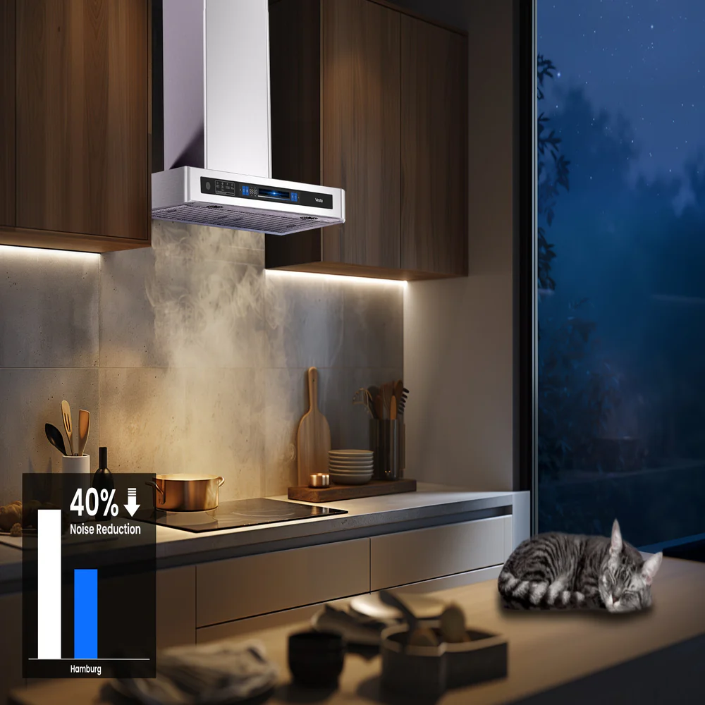 ✅ Whisper-Quiet Performance – The advanced DC motor delivers strong ventilation while operating more quietly than standard range hoods.