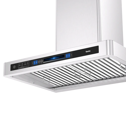Vesta’s Hamburg 36-inch stainless steel wall-mounted range hood is a durable and reliable companion for your kitchen. Featuring an ultra strong DC motor, a touchscreen panel, two baffle filters, a stainless steel canopy, and two LED lights, this range hood will elevate your cooking experience to new heights. Here’s what makes it stand out: