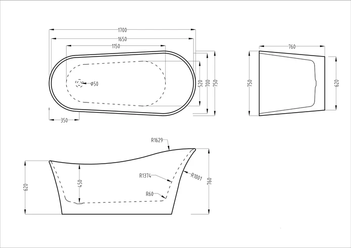 - One piece freestanding bathtub