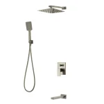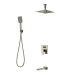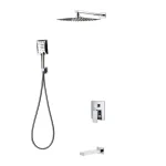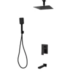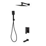 This shower system takes pure and simple geometric forms and composes them into an expression of modern luxury. Not only does it add contemporary style to your powder room ensemble with its clean-lined solid brass design and also adds unparalleled functionality. The rain head top is perfect for relaxation, while a handheld design lets you get the water right where you need it.