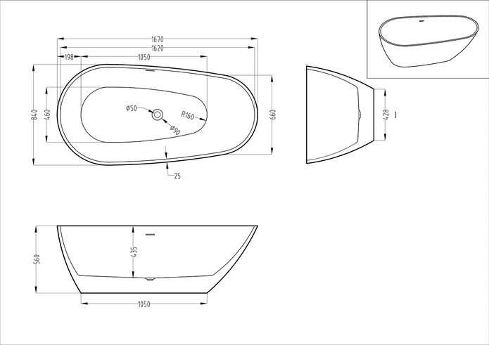 - One piece freestanding bathtub