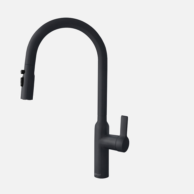 Kitchen Sink Faucet Single Handle Pull Down Dual Mode Brushed Stainless Steel and Matte Black Finish by Stylish® K-133