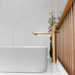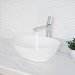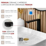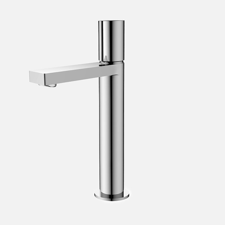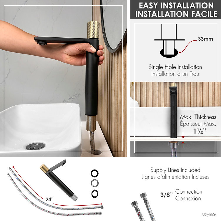 Enhance your bathroom with the sleek and elegant B-122 single-handle vessel sink faucet. Its modern cylindrical design adds a touch of contemporary flair, making it a perfect fit for any bathroom. Crafted from solid brass, this faucet ensures durability and long-lasting performance. It features a ceramic disc cartridge for drip-free operation and a premium aerator that conserves water without sacrificing pressure. Available in four finishes, this faucet is designed for single-hole installation with integrated hot and cold supply lines, compatible with standard US and Canadian plumbing. The smooth surface plating resists scratches and is easy to clean, maintaining its polished look over time. With a single lever handle for effortless control of water flow and temperature, this faucet combines functionality with style. Installation is straightforward, with all necessary hardware and waterlines included.