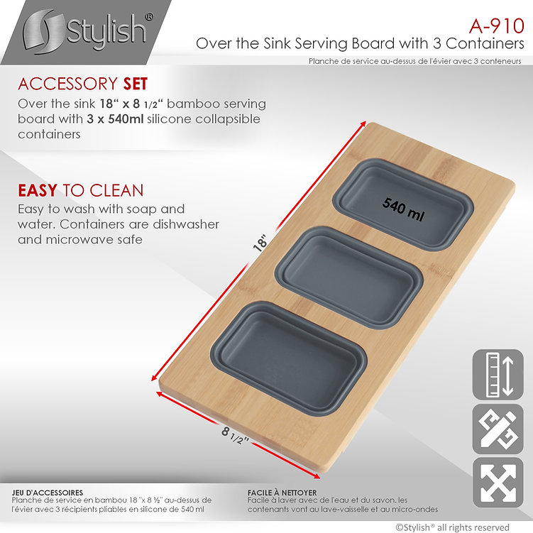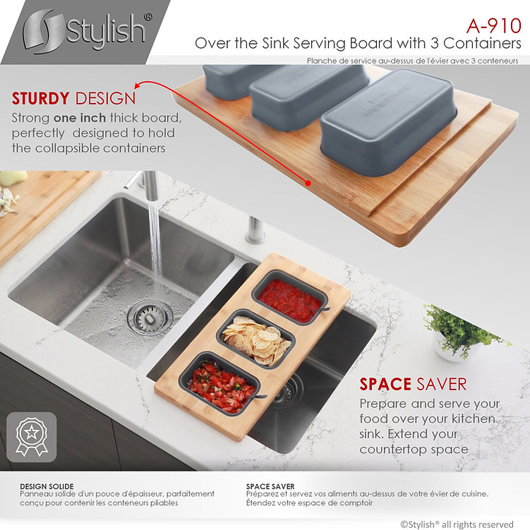 Over the Sink Serving Board with 3 Containers by Stylish® A-910