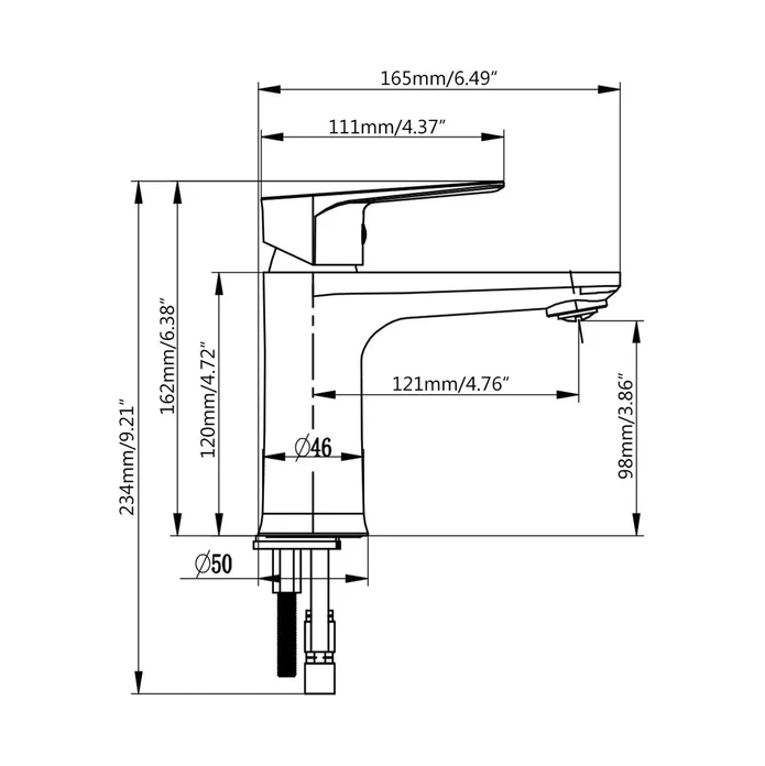 - Spout reach: 4 3/4″