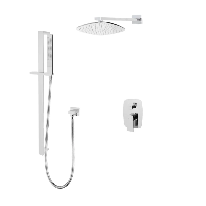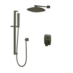 This shower system takes pure and simple geometric forms and composes them into an expression of modern luxury. Not only does it add contemporary style to your powder room ensemble with its clean-lined solid brass design and also adds unparalleled functionality. The rain head top is perfect for relaxation, while a handheld design lets you get the water right where you need it